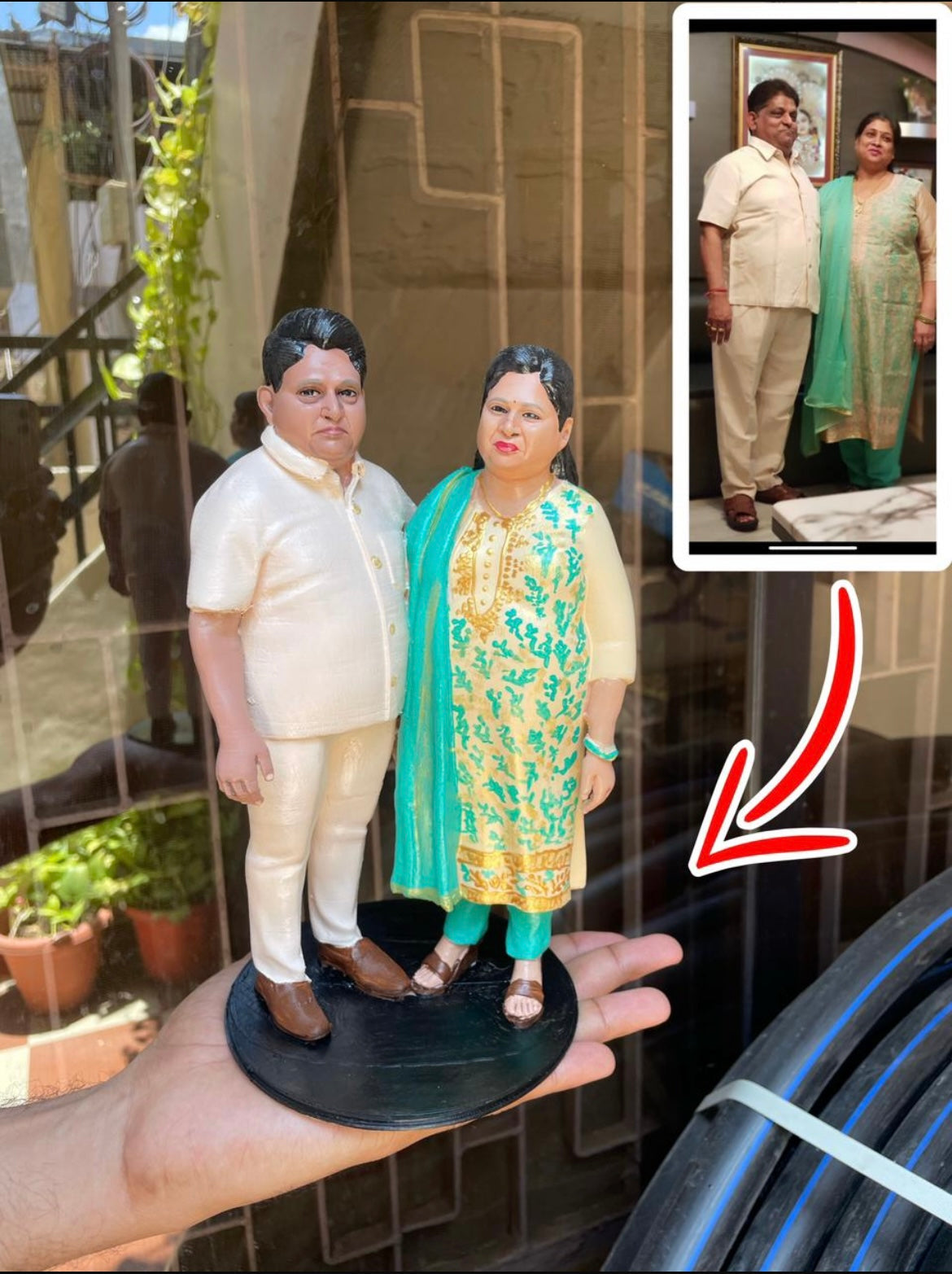 3D Statue: A 3D selfie is a replica of a person. These three-dimensional selfies are also known as 3D portraits, 3D Selfies, 3D figurines or 3D-printed figurines. They are also called 3D Couple Artoon, mini-me figurines, and 3D Artoon statues. The 3D Artoon is usually made in full colour using PLA filament and can't break easily.