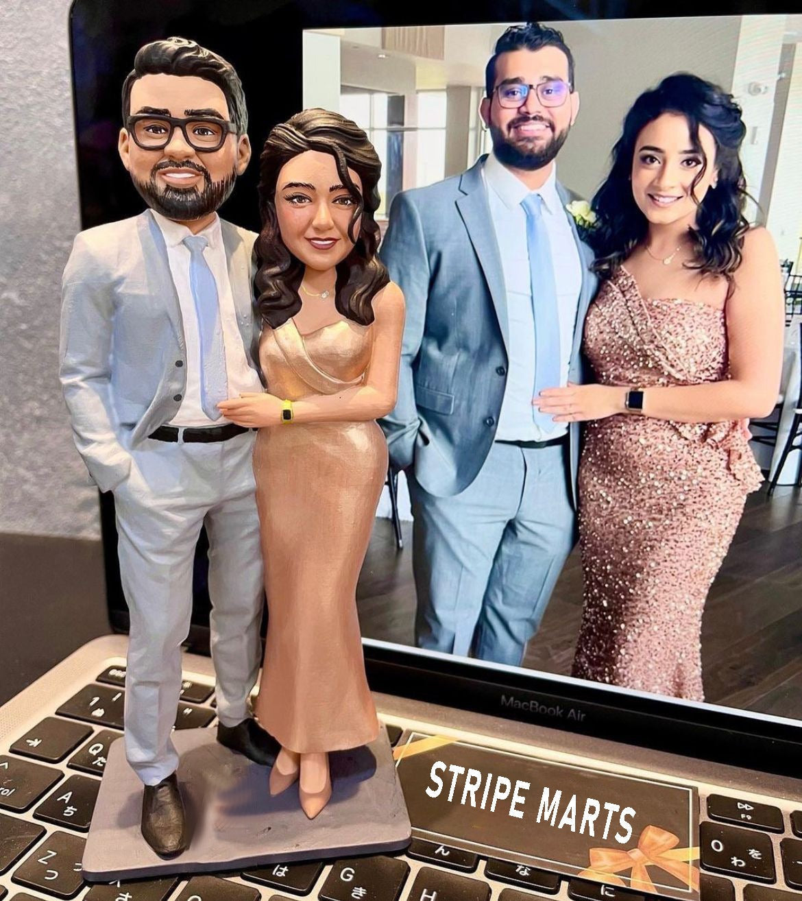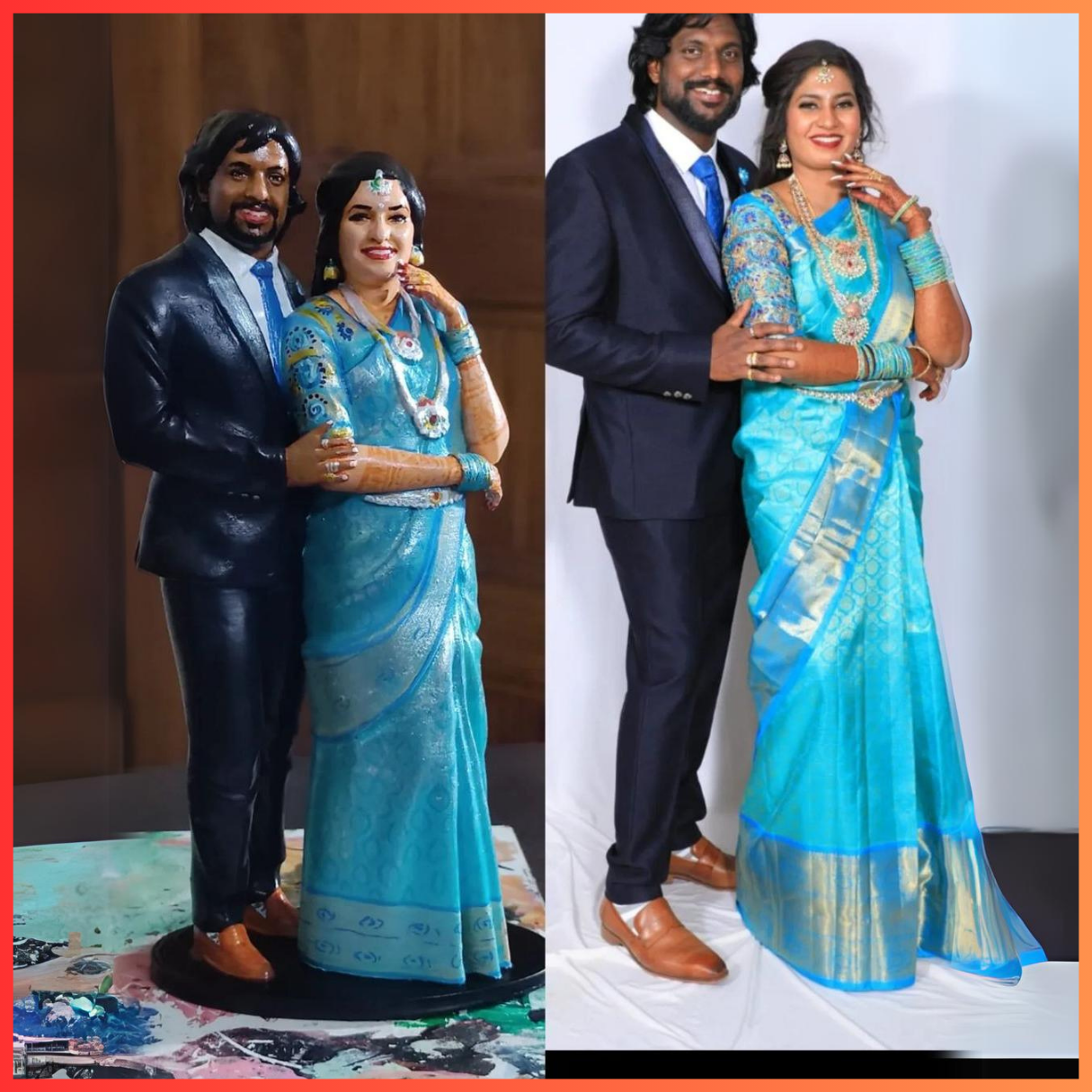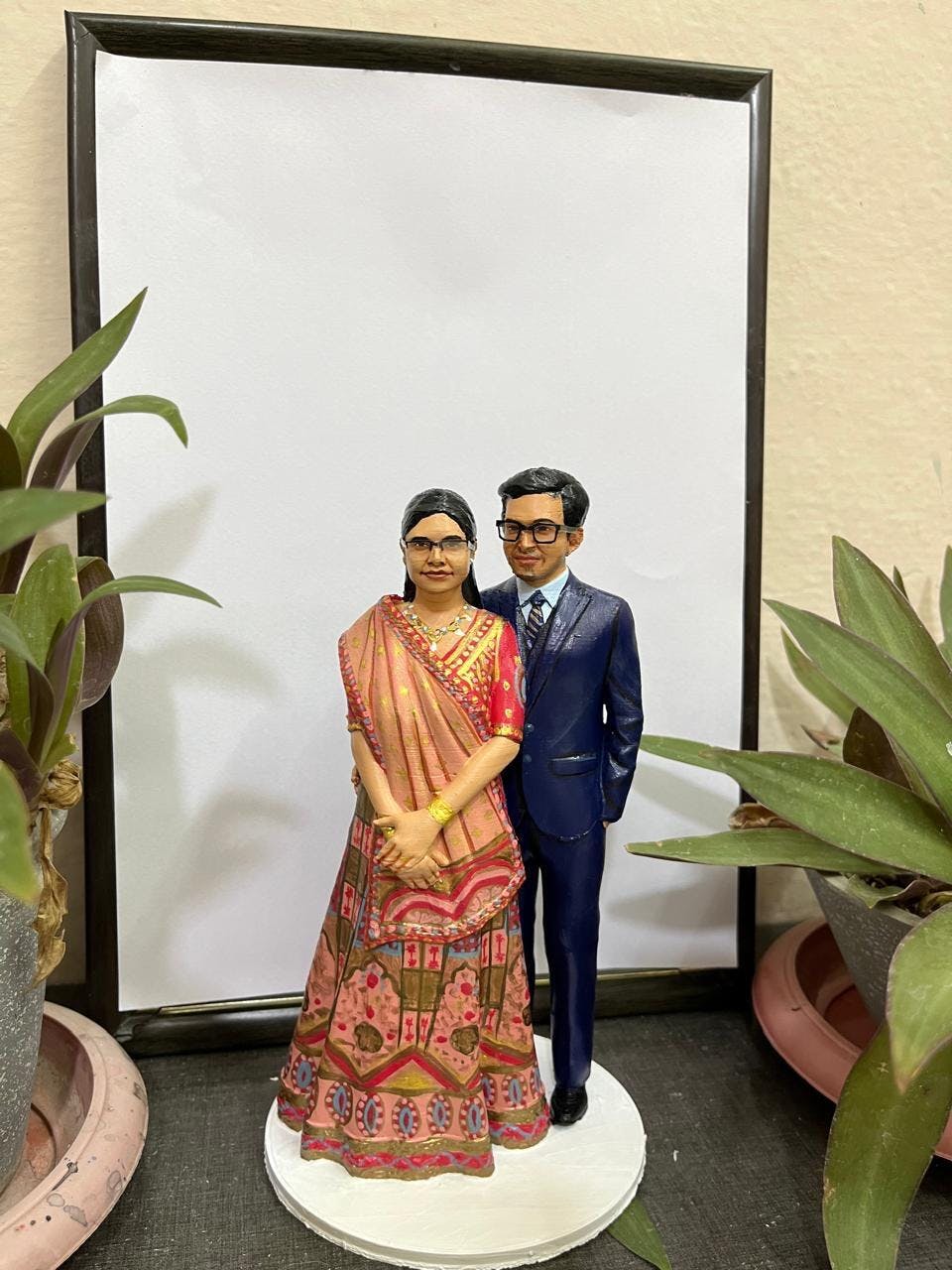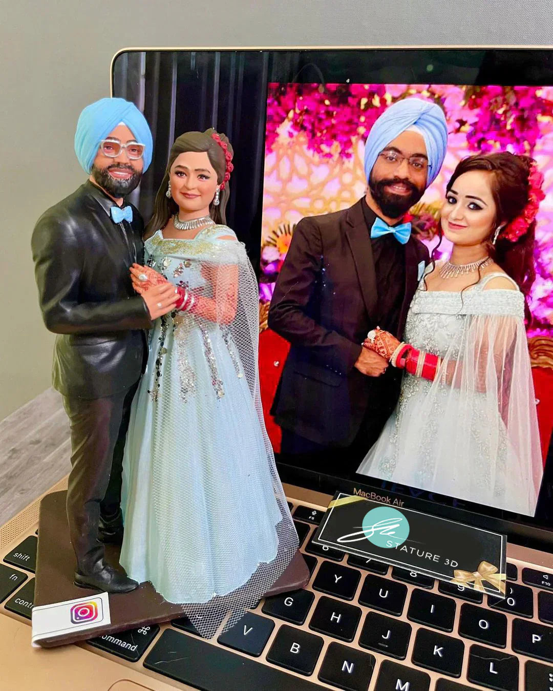 - Made from photographs – Submit 3-4 pictures of the couple over email (if possible from all angles)